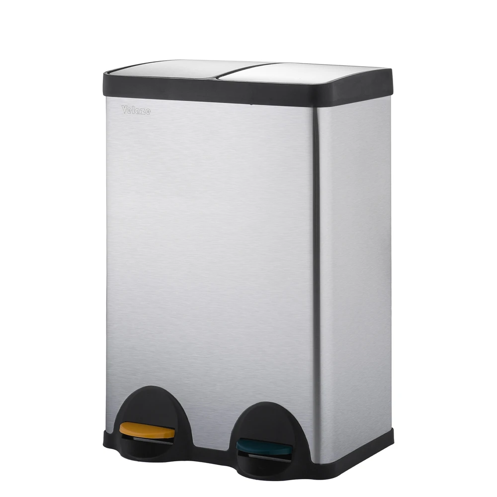 Velaze 60l Stainless Steel Foot Pedal Trash Bin With Double Compartments Premium Metal Lids Trash Can For Kitchen House Waste Waste Bins Aliexpress